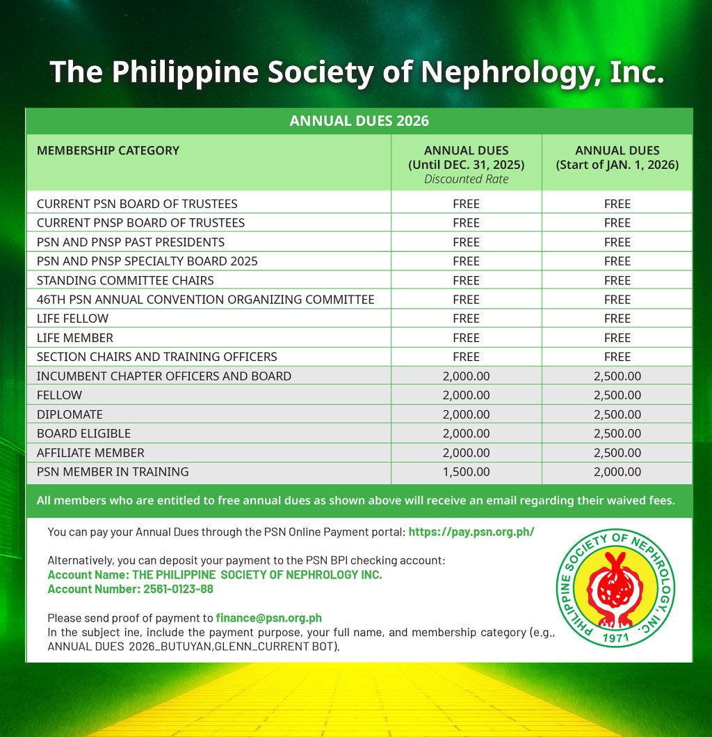 Mark your calendars for April 21 to 25, 2026, and get ready for the 46th PSN Annual Convention and the 55th Anniversary of the Philippine Society of Nephrology! The PSN Community is returning to EDSA Shangri-La Manila, where we will not only gather to learn—but to shape the future of renal medicine. Join us as we embrace the Emerald Renaissance and boldly step into a new era of nephrology—one defined by innovation, intelligence, and a deep commitment to human-centered care. Together, we will revolutionize the landscape of renal care using the power of AI and transformative technologies. This is a journey you won’t want to miss! Seize the future with us! #Nephrology #RenalMedicine #KidneyCare #MedicalConvention #HealthcareInnovation #PSN55 #46thPSNConvention |